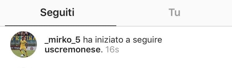 INDIZIO SOCIAL – Nell’era dei social sappiamo molto bene come un semplice “mi piace” o un “segui” dei personaggi famosi, soprattutto dei calciatori in tempo di calciomercato, vengano posti sotto i riflettori degli appassionati. Il centrocampista Gori sembra che ci sia cascato, iniziando – nella giornata di ieri, sabato 5 gennaio – a seguire su Instagram il profilo ufficiale della Cremonese. Al momento tra i follower della società grigiorossa non compare, probabilmente per il fatto di essersi accorto del fatto che il gesto stava ormai diventando di dominio pubblico. Lo screen qui sotto dimostra quanto appena affermato. Sarà grigiorosso? Lo scopriremo solo nei prossimi giorni.