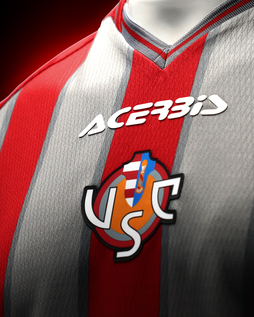 Nella parte superiore della maglia trovano spazio due nuovi elementi distintivi: lo scollo a V con sovrapposizione di elementi grafici di colore alternati, sempre giocati con i toni grigio e rosso e la sigla sociale “USC” applicata nella parte posteriore. Il tessuto è realizzato con filato riciclato di poliestere, traspirante e arricchito da un piccolo motivo jacquard romboidale. Tra le novità il doppio polso, nel quale si gioca sempre con l’alternanza dei due toni di colore che dal 1914 accompagnano la storia della Cremonese.